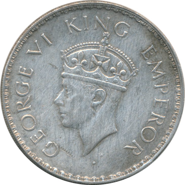 George VI, Half Silver One Rupee, 1944, Obv: Crowned head to left, Rev: Denomination & Date within circle, wreath surrounds, Very Fine.