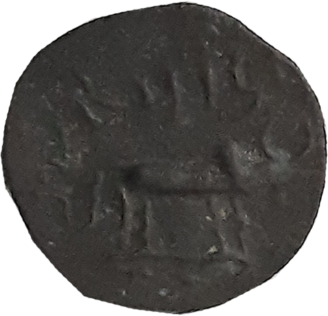 Post Ananda Banavasi, Buddhananda Satkarni, Potin, 1.22g, Bull to right Type, Obv: Bull to right, river like wavy lines below, Brahmi legend “Rano Vishnu Ruda Bu(ddhanandasa)”, Rev: Bow and arrow like devices, lines and circles (Pieper# 2115). About extremely fine.