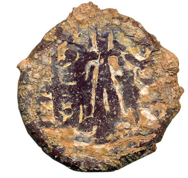 Kausambi, Guilds- Negamas, Copper, 1.23g, Obv: Brahmi legend probably reads as “Sho-she-ni-ya”, Rev: Crescent like symbol (Pieper# 1134). About extremely fine, rare.