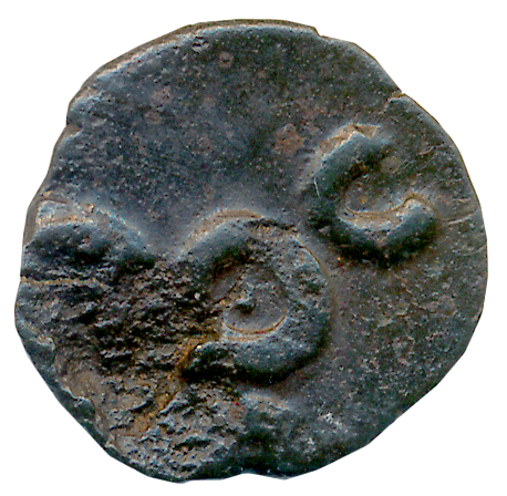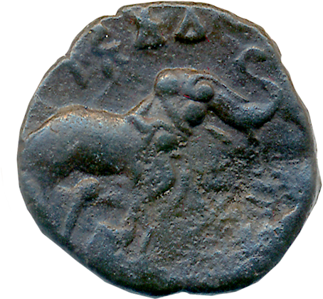 Indo Greeks, Philoxenos, Copper, 8.48g, Obv: Tyche standing holding cornucopia, Greek legend “ΒΑΣΙΛΕΩΣ ΑΝΙΚHΤΟΥ ΦΙΛΟΚΖΗΝΟΥ”, Rev: Bull walking to right, Kharosthi legend “Maharajasa Apatihatasa Philasinasa” (Hoover# 274). Patinated, very fine+, rare.