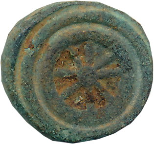 Ancient Deccan, Vidarbh region, Uninscribed Cast Copper, 7.98g, Uniface, Six arched chaitya, Taurine below. Very fine+, rare.