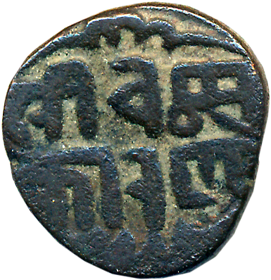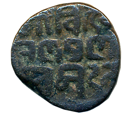 Yadavas of Devagiri, Mahadeva, Silver Kasu, 0.91g, Obv: Lion standing left with tail raised, Rev: Truncket Devnagari legend “Sri Mahadeva” (Mitch# 290). Very fine.