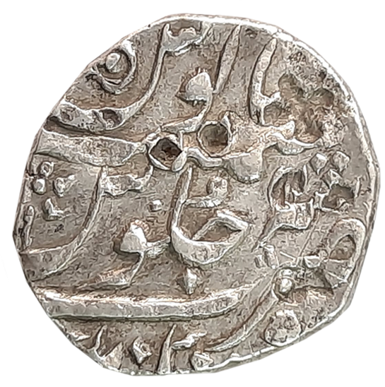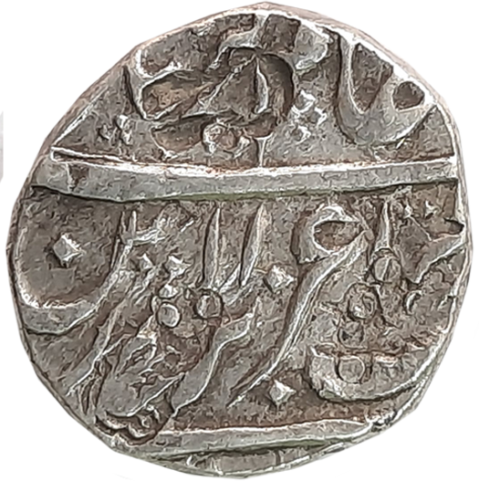 Muhiabad- Poona, Silver Rupee, 11.32g, in the name of Shah Ali Gauhar (Shah Alam II), RY 6, Parsu- Battle Axe as a mint mark (M&W# T5). Very fine.