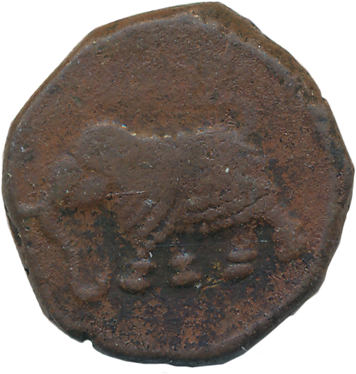 Mysore, Tipu Sultan, Copper 1/4 Paisa, 2.66g, Patan Mint, Obv: Elephant to left, Persian “Te” above, Rev: Denomination “Akhtar” above Mint name (KM# 101.4). Fine.