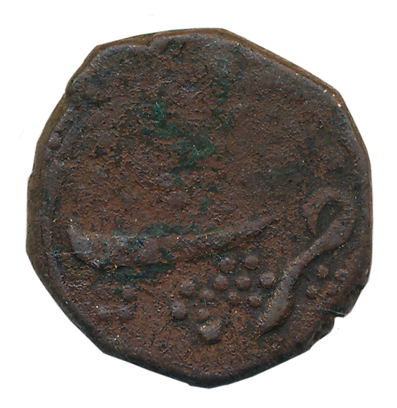 Marathas, Copper Paisa, 5.50g,” Fish” Type, in the name of Shah Alam II. Very fine.
