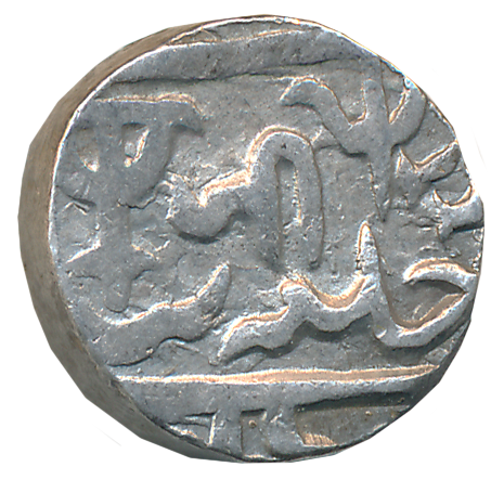 Madho Rao, Silver 1/4 Rupee, 2.68g, Bhilsa Mint, in the name of Shah Alam II, Devnagari “Ma” on reverse, Sword as Mint mark (Not listed in KM). Very fine, rare.