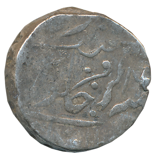Madho Rao, Silver 1/4 Rupee, 2.68g, Bhilsa Mint, in the name of Shah Alam II, Devnagari “Ma” on reverse, Sword as Mint mark (Not listed in KM). Very fine, rare.
