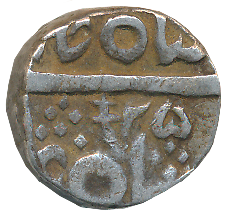 Madho Rao, Silver 1/4 Rupee, 2.68g, Bhilsa Mint, in the name of Shah Alam II, Devnagari “Ma” on reverse, Sword as Mint mark (Not listed in KM). Very fine, rare.