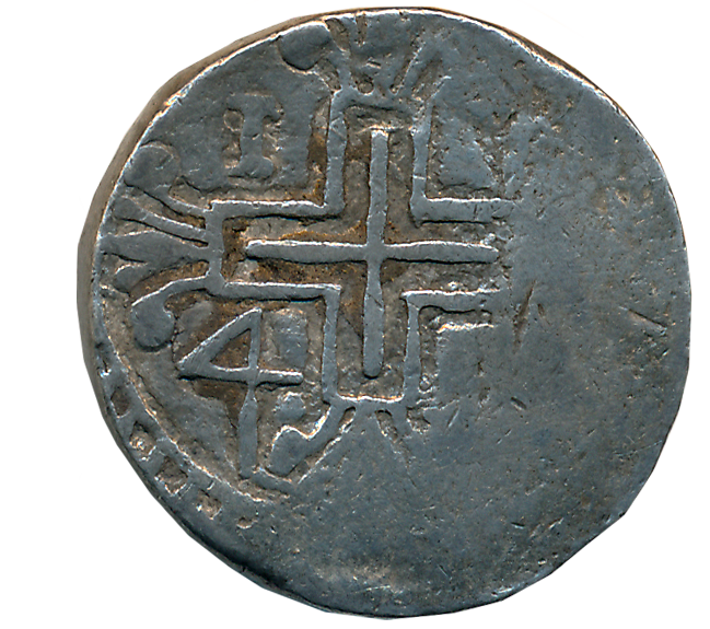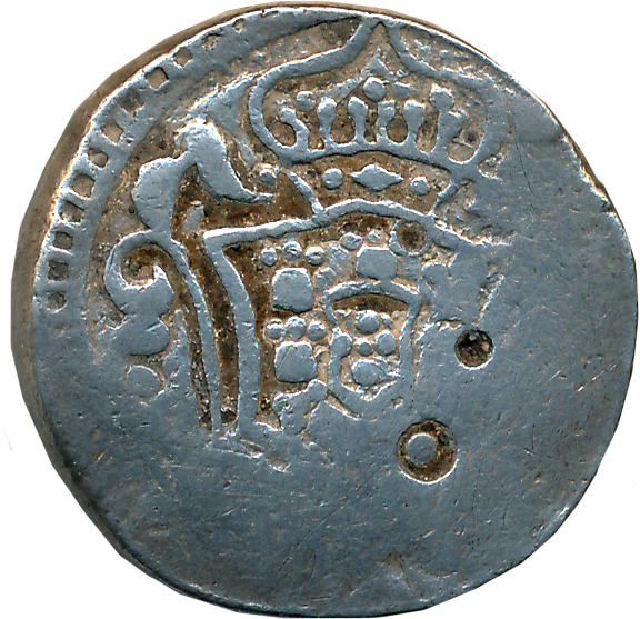 Indo Portuguese, Chaul, D. Sebastiao, Copper 4 Bazarucco, 17.32g, Obv: Stylized representation of a shield (Portuguese royal emblem), Rev: A bunch of three arrows and a bow, symbolizing the Christian saint St Sebastian. Very fine for type, extremely rare. Chaul is located in Notthern Konkan and emerged as a great trading hub in the medieval period. The Portuguese established a colony at Chaul in 1521 and it remained under Portuguese control until 1740, when Peshwa Bajirao liberated the entire North Konkan in a concerted anti-Portuguese campaign. 4-Bazarucco is the heaviest denomination in this very rare series of early Indo-Portuguese coinage struck at Chaul.