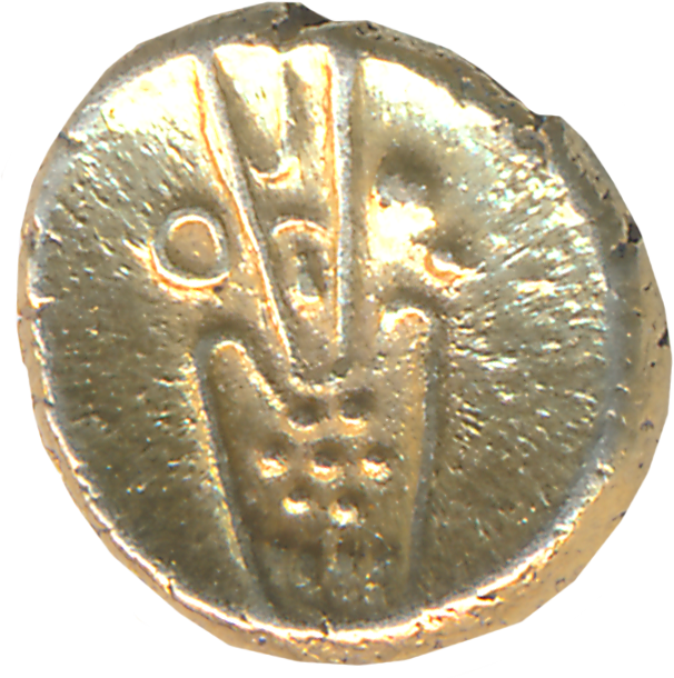 Gold Fanam, 0.35g, Uniface, Degenarated figure of Goddess Kali on obverse. Extremely fine. 3 coins.
